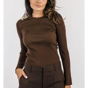 Sweter jedwabisty damski OLAVOGA MILLY Brązowy | S | Oficjalny Sklep Partnerski OLAVOGA | Pasuri