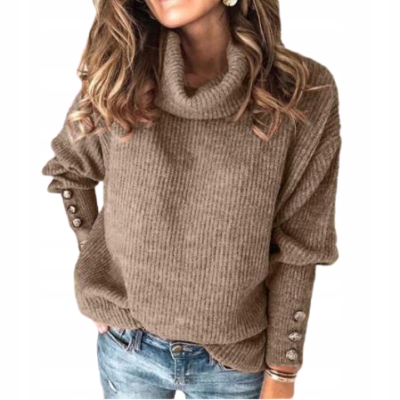 Ciepły dzianinowy sweter damski pół golf jesień/zima