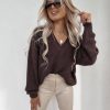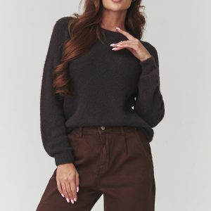 Sweter damski typu kardigan z guzikiem czekoladowy S134 | Dobre Ceny | Sklep Online Makadamia