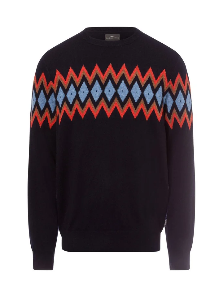 Fynch Hatton Sweter z zawartością kaszmiru Mężczyźni Wełna niebieski wzorzysty, M