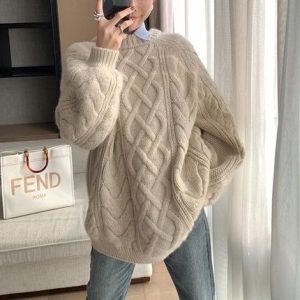 SWETER DAMSKI GRUBY CIEPŁY OVER SIZE PLECIONY BEŻOWY (5903672280051) • Cena, Opinie • Swetry 16463939976 • Allegro