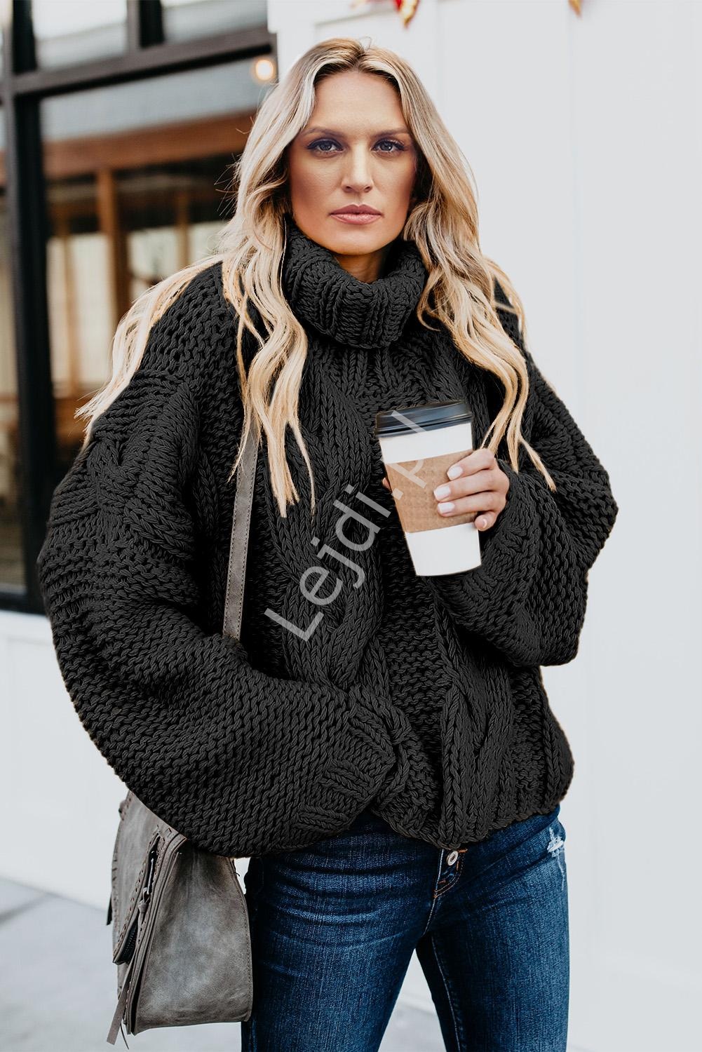 Gruby dziergany czarny sweter typu oversize 034