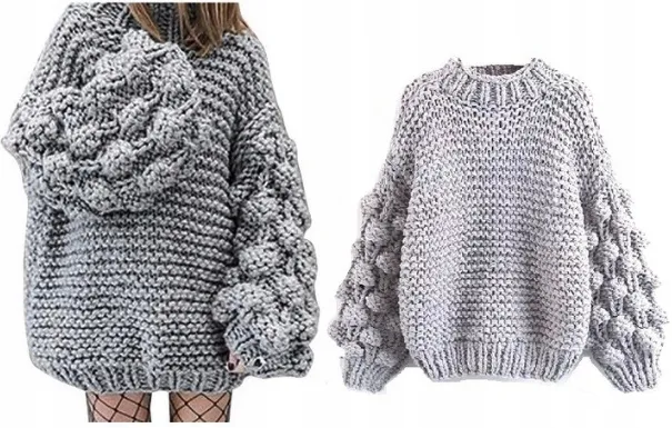 SWETER DUŻY GRUBY OVER SIZE Z POMPONAMI GOLF CIEPŁY MIĘKKI ZIMA SZARY GREY – 169070946