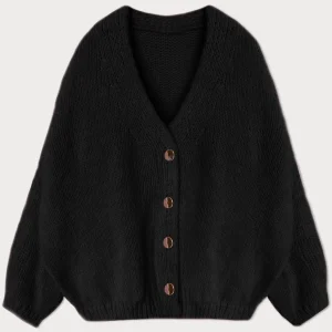 Sweter damski typu kardigan z guzikiem czarny S134 | Dobre Ceny | Sklep Online Makadamia