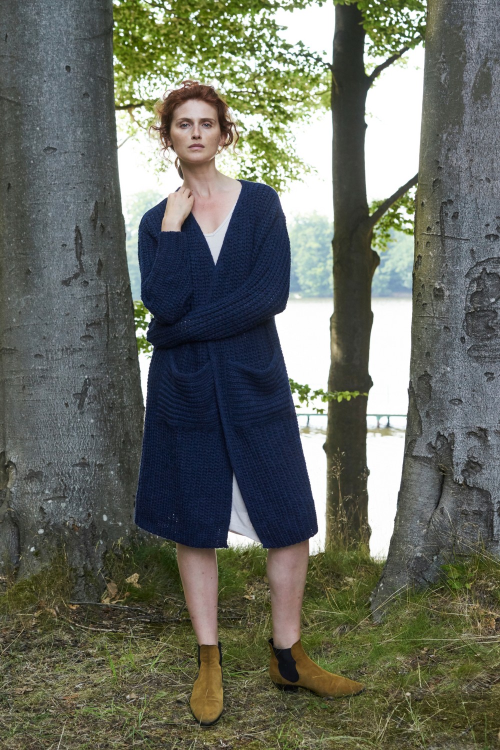 Wełniany, długi kardigan z kieszeniami, granatowy BIENKOVSKA
