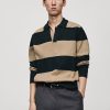 MANGO Sweter w paski z kołnierzykiem polo granatowy L Kobieta