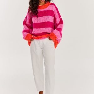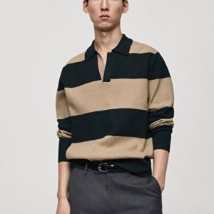 MANGO Sweter w paski oversize czekoladowy XL Kobieta