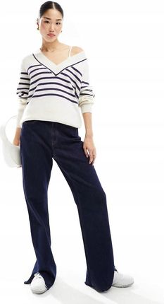Mango Kremowy Sweter Oversize Paski Kontrast V neck Uee NG7 XL Ceny i opinie