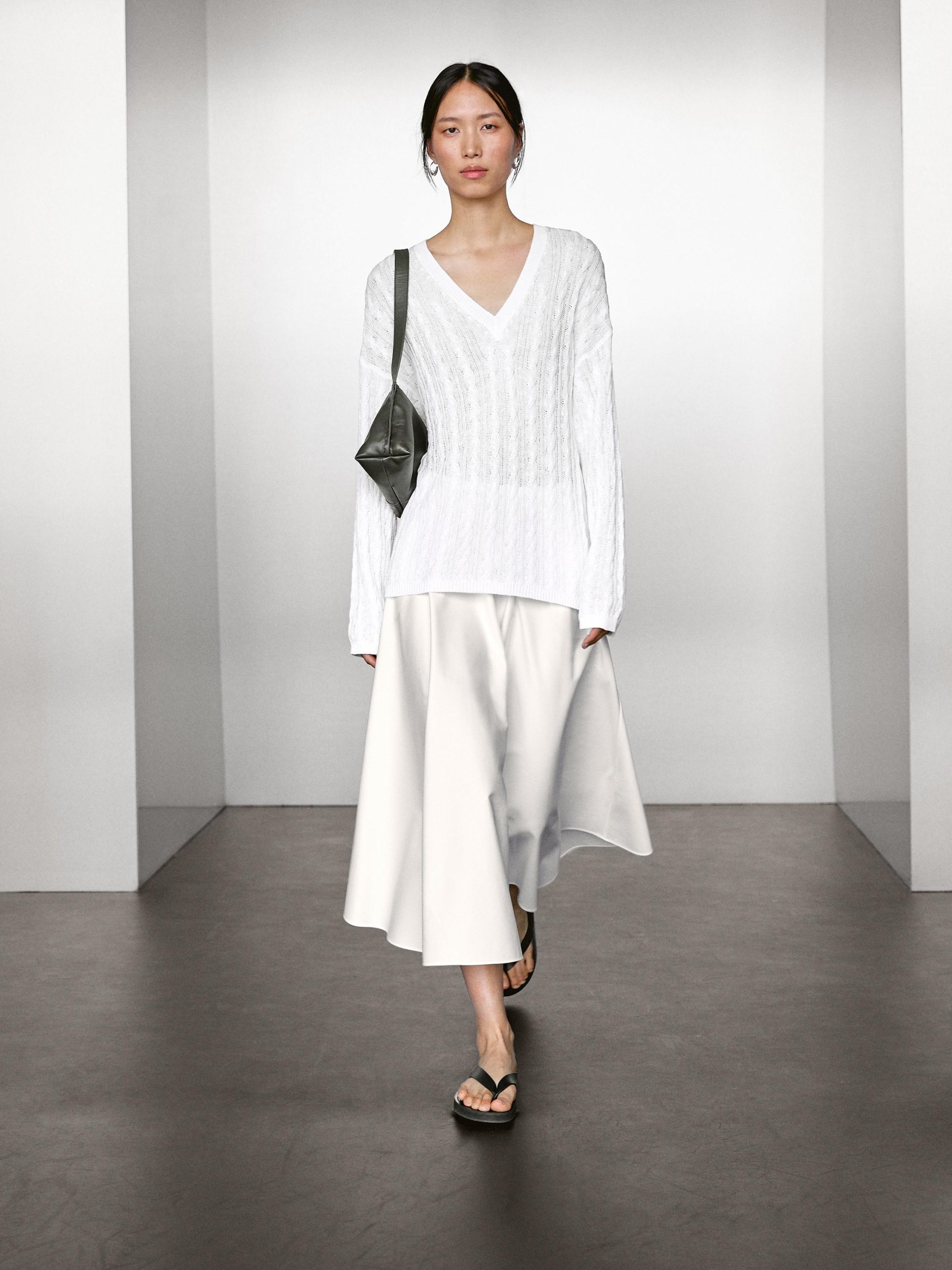 Ażurowy sweter z mieszanki bawełny · Biały · Swetry | Massimo Dutti