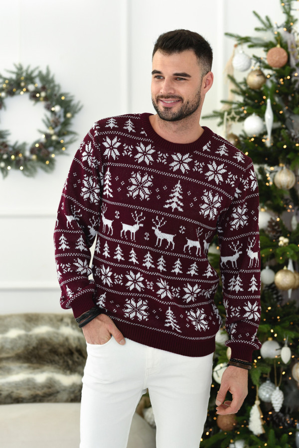 Sweter Świąteczny Męski Burgundowy Amareno Moda