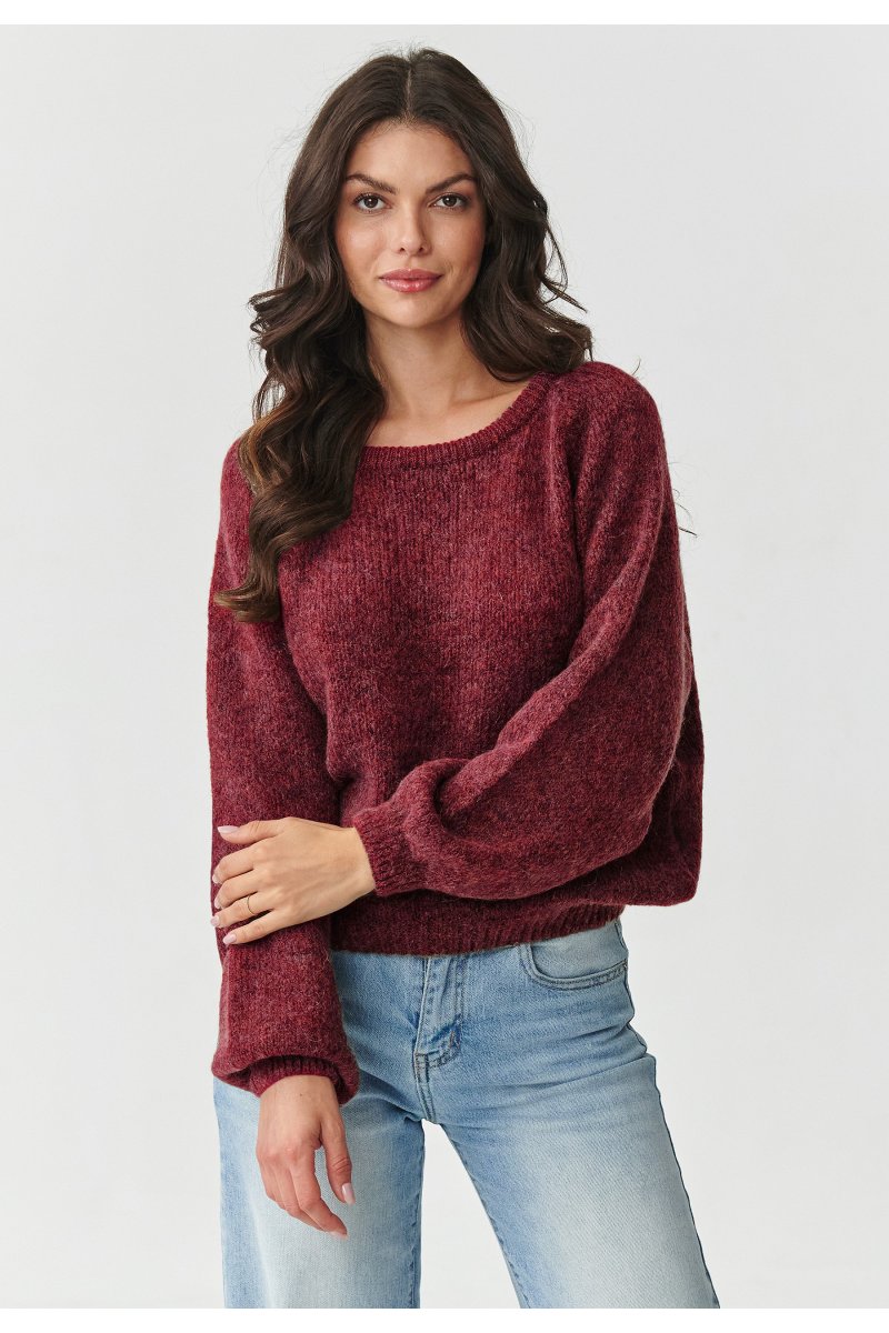 Klasyczny sweter damski z dodatkiem kid moheru i wełny bordowy S168