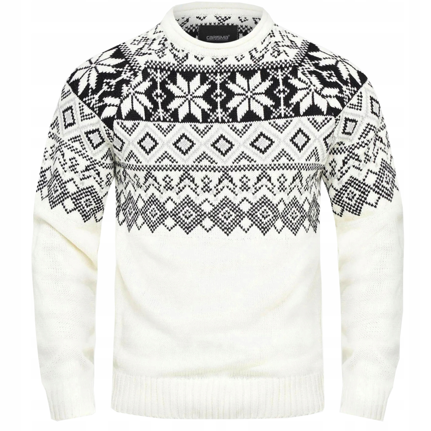 CRSM CARISMA sweter Elastyczny rozciągliwy Ciepły Wzór Norweski biały okrągły rozmiar 3XL • Cena, Opinie • Swetry 14336555435 • Allegro