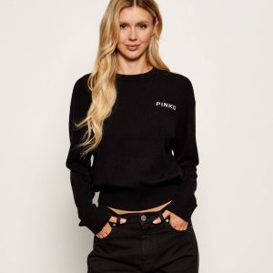 Pinko Sweter Logo 100414 Y7Z4 Czarny Regular Fit |