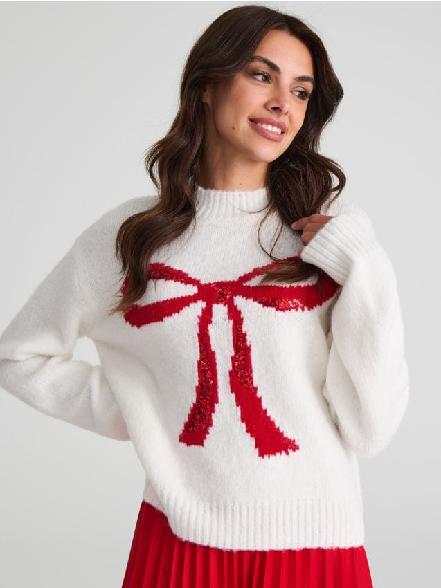 Sweter z motywem kokardy Kolor kremowy SINSAY 462CA 01X