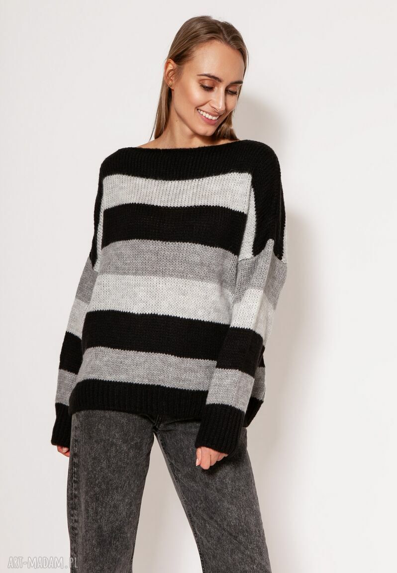 Oversize’owy sweter w paski SWE299 czarny/szary/jasny szary MKM
