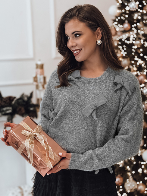 Sweter damski one size BOWTONE z kokardkami jasnoszary Dstreet MY2354