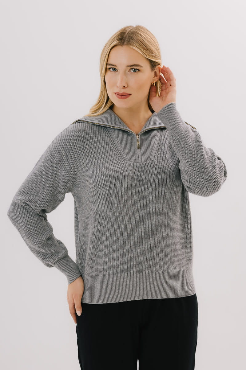 Sweter z suwakiem bawełniano kaszmirowy Flora, szary Monika Kamińska