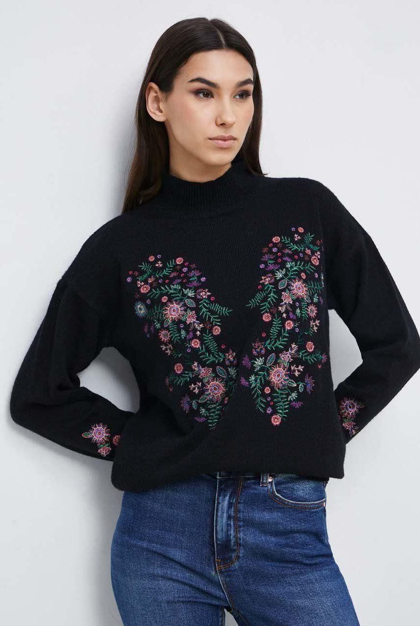 Medicine sweter damski kolor czarny z półgolfem Ceny i opinie